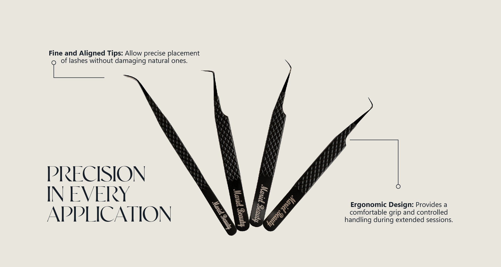 Precision tweezers are essential for a lash artist's work. Curved tweezers are ideal for volume lash extensions, while straight tweezers are perfect for more fine applications. The choice of tweezers depends on the style and technique you use for applying lash extensions.